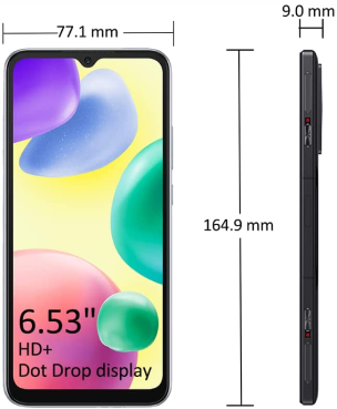 - Display: IPS LCD, 400 nits (typ) | 6.53 inches, 102.9 cm2 (~81.0% screen-to-body ratio) | 720 x 1600 pixels, 20:9 ratio (~269 ppi density)