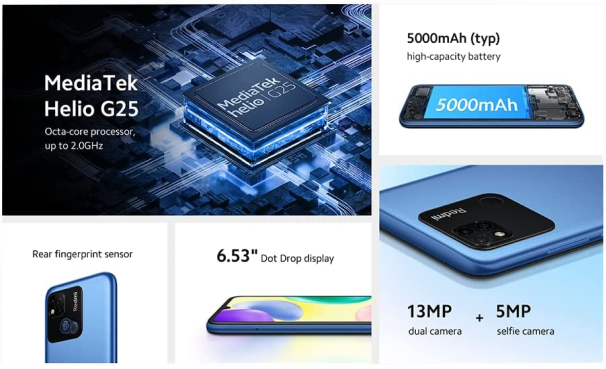 - Cameras: 13 MP, f/2.2, (wide), 1.0µm, AF | 5 MP (Selfie)